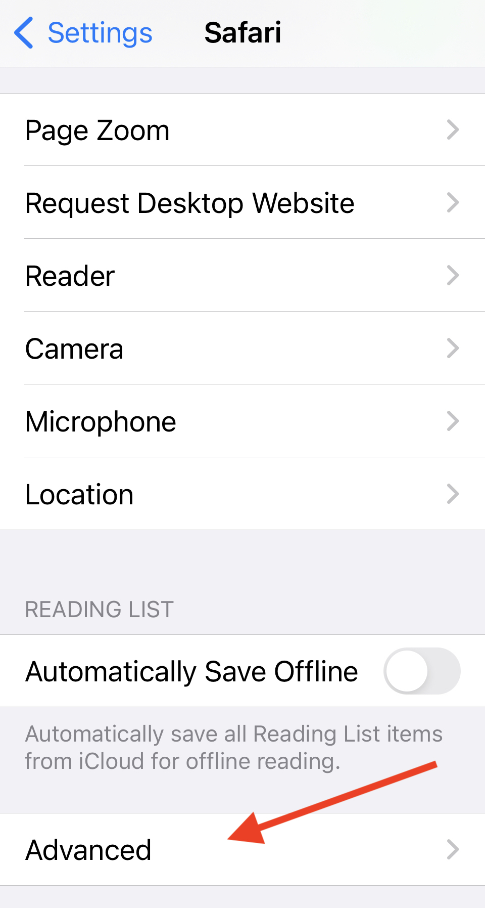 Scroll all the way to the bottom and find Advanced and tap on it.